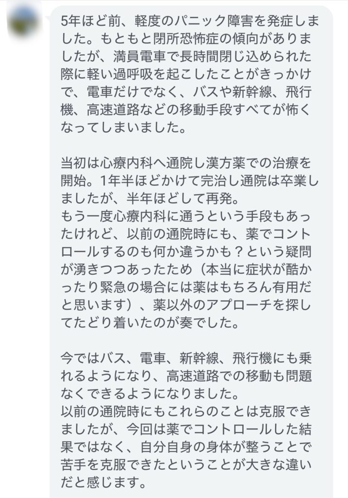 パニックに限らず、これから先の人生において自分の身体との向き合い方を考える上で大切な学びだったと思います。