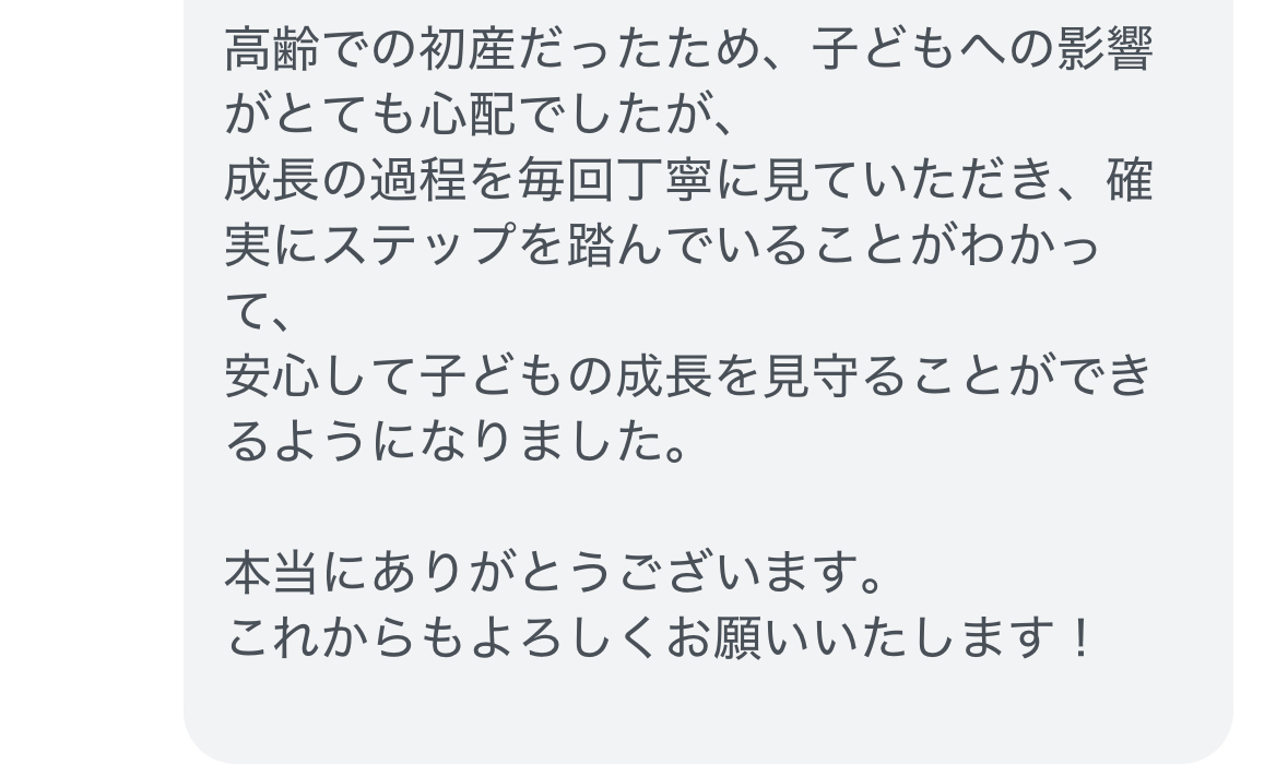 高齢での初産だったため、子どもへの影響がとても心配でしたが、