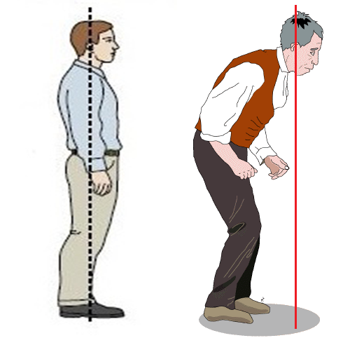 このご病気の方で多いのが図の様な前傾姿勢となられる方です。